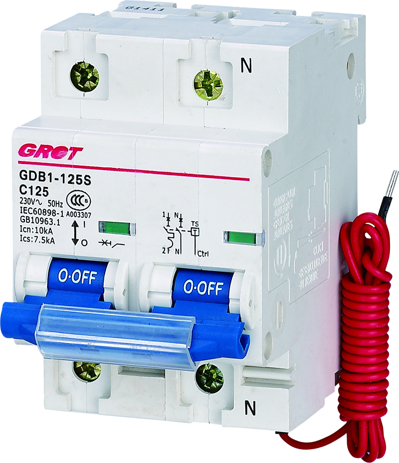 GDB1-□S series circuit breaker for prepaid electricity meter has control signal undervoltage delay shunt trip function, suitable for AC 50Hz (60Hz), rated working voltage 1P+N/230V, 3P+N/400V, rated current up to 125A. The circuit is controlled by remote control or automatic signal control, and the line is overloaded and short-circuit protected. It is widely used in the national grid one-to-one meter renovation project and IC card prepaid energy meter with external special circuit breaker to prevent unpaid electricity bill, and the protection characteristics of the circuit breaker is C-type.