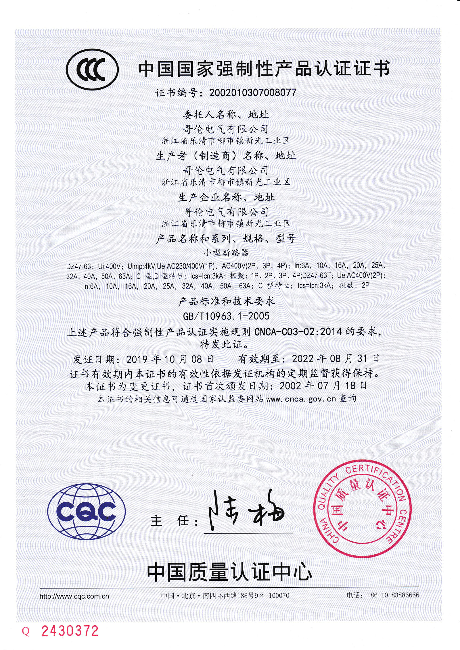 DZ47-63小型斷路器,適用于照明配電系統(C型)或電動機的配電系統(D型)。外觀美觀小巧、重量輕,性能優(yōu)良可靠,分斷能力較高,脫扣迅速,導軌安裝,殼體和部件采用高阻燃及耐沖擊塑料,使用壽命長,主要用于交流50Hz/60Hz,單極230V,二、三、四極400V,電流至63A的線路中起過載、短路保護,同時也可以在正常情況下不頻繁地通斷電器裝置和照明線路。