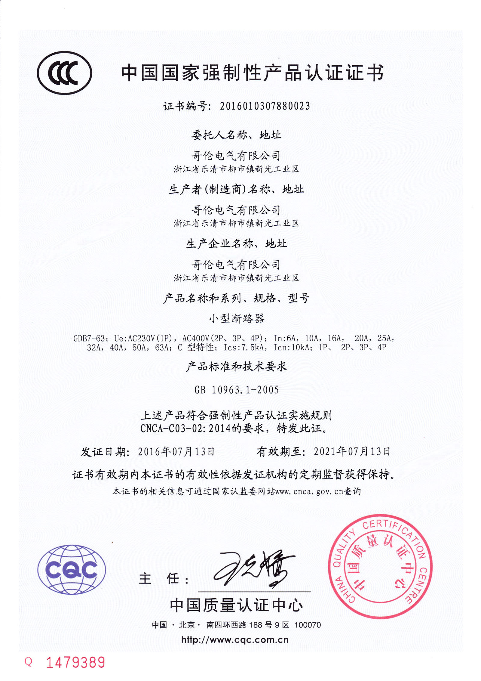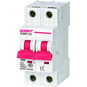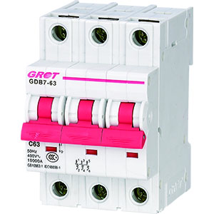 GDB7-63小型斷路器(以下簡稱斷路器),主要用于交流50Hz/60Hz,額定工作電壓至400V,額定電流至63A及以下的配電線路中,作過載和短路保護,亦可作為線路不頻繁通斷操作與照明線路之用。