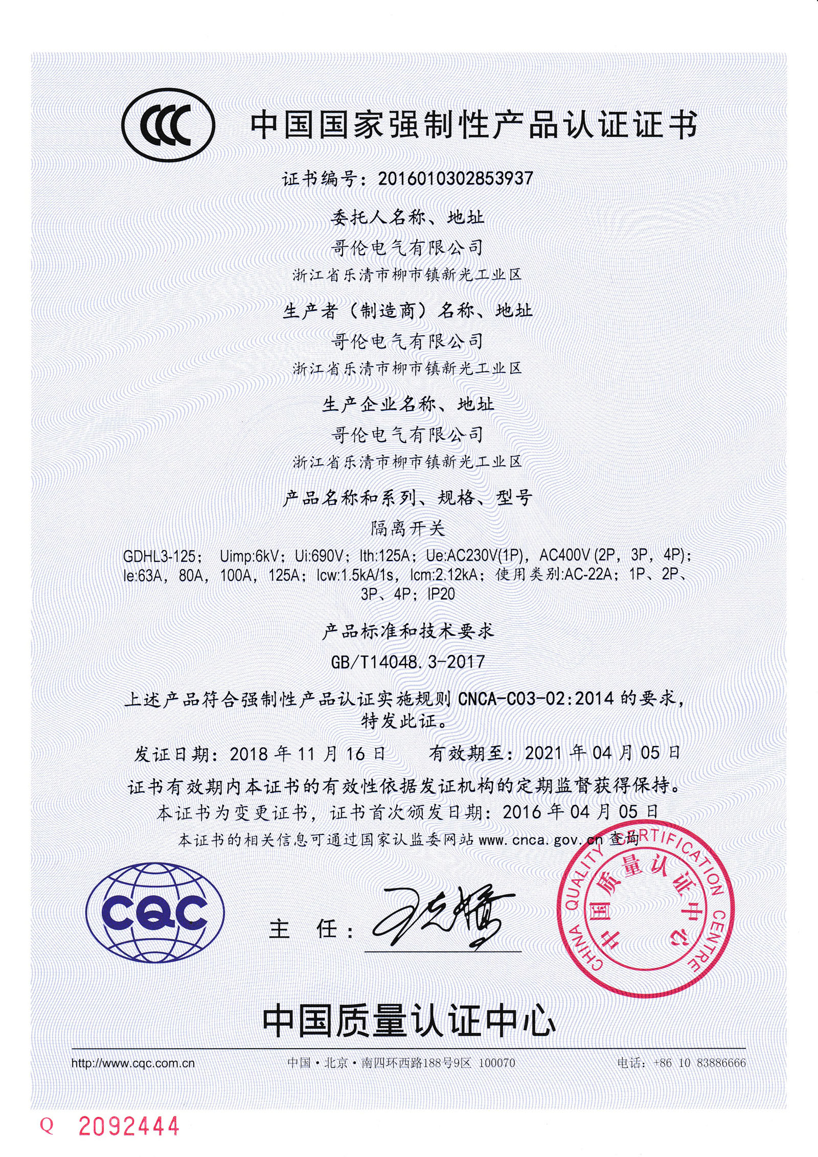 GDHL3-125系列隔離開關(guān)(以下簡稱開關(guān))適用于交流50Hz、額定電壓230V/400V、額定電流至125A的電路中,主要用于通斷電阻性負(fù)載,包括適當(dāng)過負(fù)載,作線路與電源隔離之用。本產(chǎn)品具有帶鎖功能,檢修人員在維修時可以將鎖把合閘手柄鎖住,可防止檢修時的意外合閘,另外還添加了一個可視窗口,可以看清觸頭分合情況。尤其適合檢修線路時有效隔離電源并防止意外合閘,以確保檢修人員的操作安全。