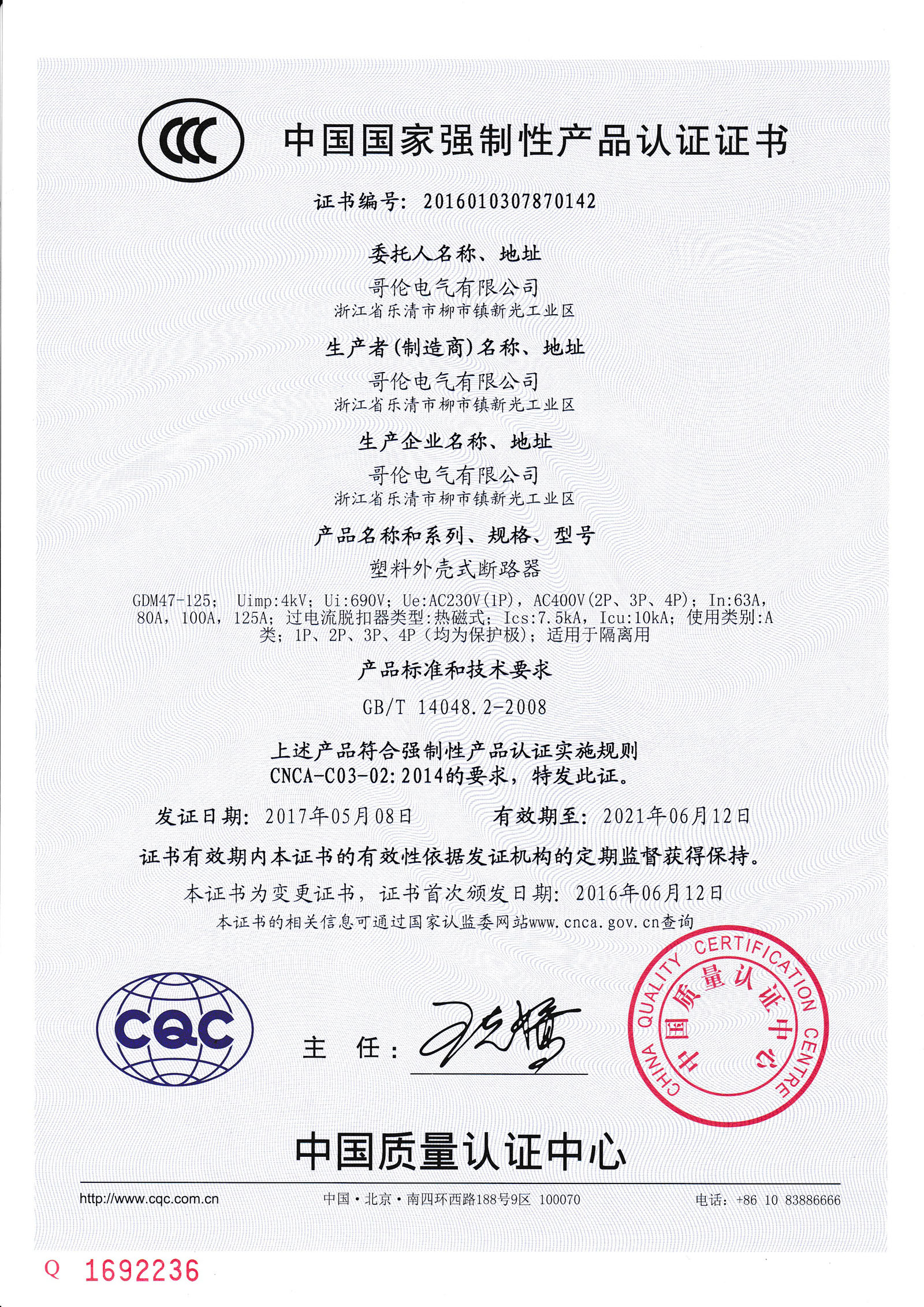 產品符合IEC60947-2、GB/T 14048.2標準。
