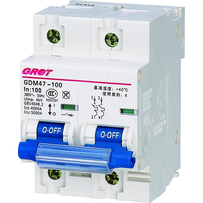 GDM47-125(NC125)系列塑料外殼式斷路器具有高分斷能力和限流特性,同時具備隔離開關功能,還可以拼裝漏電保護附件,并能與多種電氣輔助裝置組成功能性開關組合,廣泛適用于低壓配電系統(tǒng)中作為過載、短路保護, 適用于隔離用。 斷路器額定工作電壓 AC230V(1P),AC400V(2P、3P、4P)。