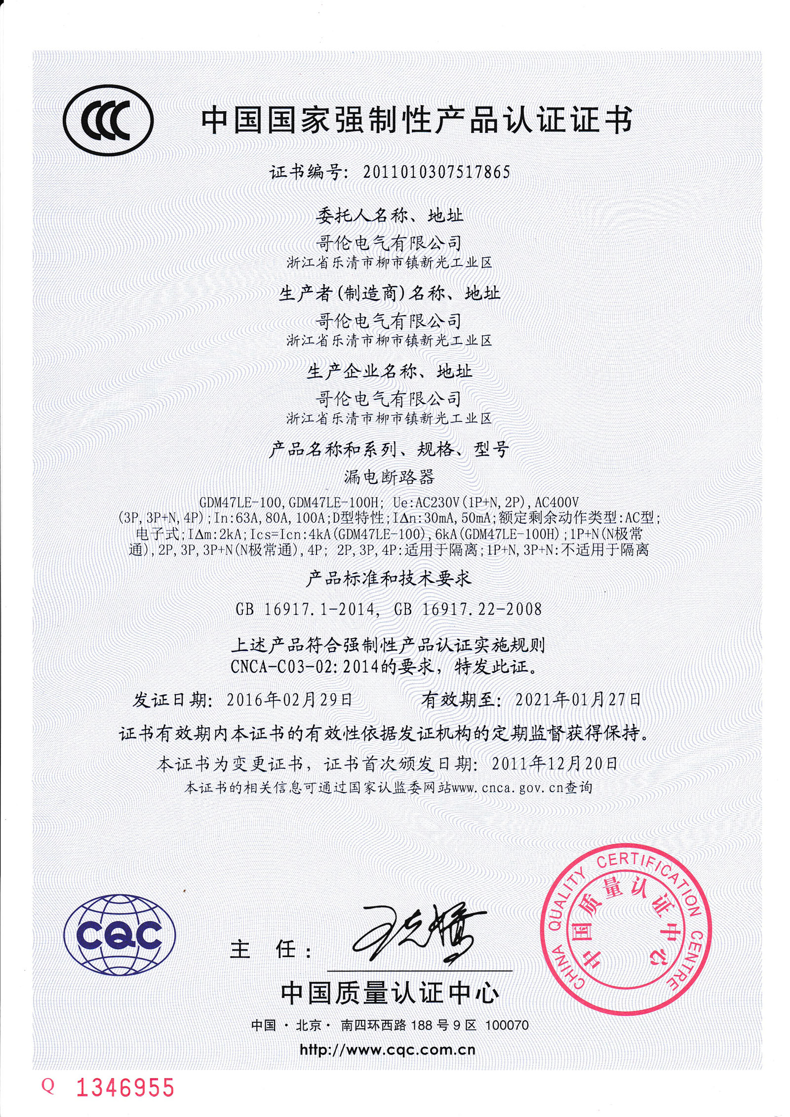 GDM47LE-100(H)系列剩余電流動(dòng)作斷路器適用于交流50Hz額定工作電壓230V(1P+N,2P),400V(3P,3P+N,4P),其額定電流至100A的電源中性點(diǎn)直接接地的供用電系統(tǒng)中。作為漏電保護(hù)之用,也可用來(lái)防止因設(shè)備絕緣損壞,產(chǎn)生接地故障電流而引起的火災(zāi)危險(xiǎn);同時(shí)還可以用來(lái)分配電能和保護(hù)線(xiàn)路及電源設(shè)備的過(guò)載和短路,保護(hù)特性為D型特性。